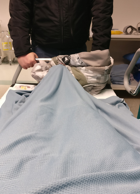 В дежурном отделении, оно же päivystys, мы были уже в 19:10. Пришлось подождать, народу было много. Пока мы ждали, естесственно все из меня текло и текло и мне ничего не оставалось, как проложить все это дело салфетками. Приняла нас снача медсестра, которая записала все первичные данные, что случилось, когда, есть ли аллергии и прочее. Потом меня определили на кушетку ждать врача из отделения гинекологии. За это время пришла медсестра и принесла мне больничные штаны, чтобы переодеться, т.к. я и у нее на стуле оставила лужу, пока она все записывала.