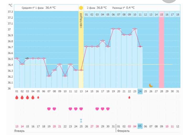Мой график базальной t°, цикл от 13 января 2018