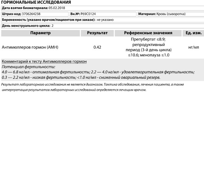 У меня примерно похоже. В августе амг 0,15, фсг 18. Гиня сказала преклимакс, отменяйте предохранение и живите в свое удовольствие. Была у репродуктолога. Сказали ЭКО. И возможно донорская яйцеклетка. Полгода на утрике. Ноябрь и декабрь на овариамине. В конце января М не пришли. ХГЧ растет. Жду УЗИ. Не знаю чем закончится, ведь при таком амг качество яйцеклеток страдает. Удачи!