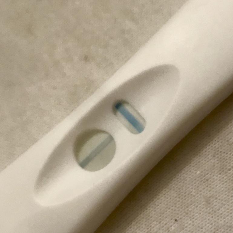 Переделайте другой тест , этот всегда + показывает , что он показал Б + должен быть жирным , все остальное не информативен. Лучше через несколько дней обычный тест сделайте. Удачи !