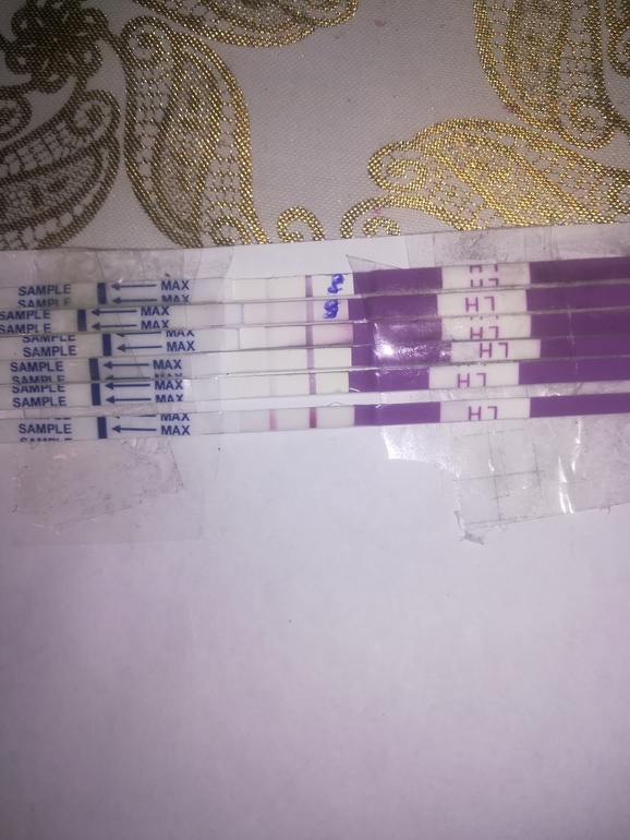 Овуляция( тесты на овуляцию)Девочки, опять я, помогите пожалуйста. Последние 2 теста это сегодня.предпоследний - это сегодня утром ( не на первый попис), последний - сегодня в обед. Это все? Овуляция прошла? Получается предпоследний был положительный? Он утром был ярче, почти такая же полоска как контрольная была .