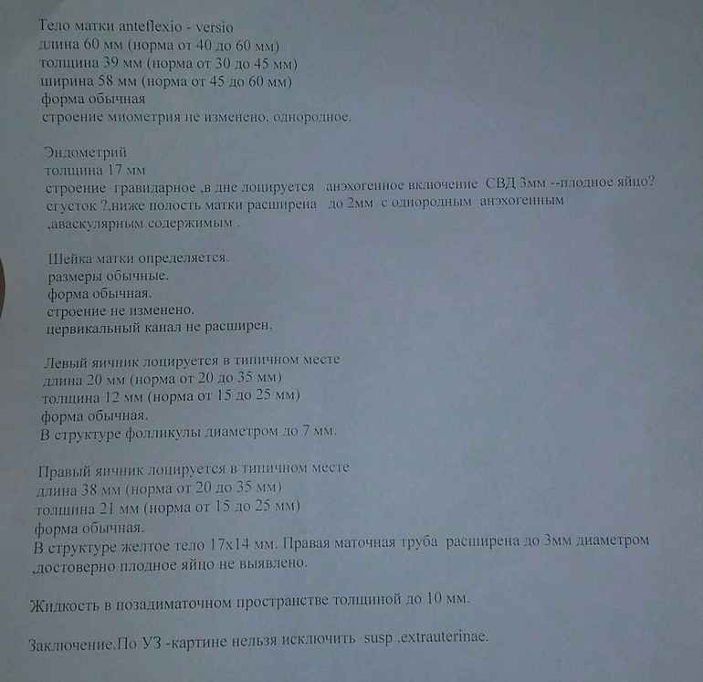 Узи переделала в другом месте. Никакого расширения трубы врач не увидела. Жидкость есть, но в скудном количестве, менее 1 мм. Эндометрий для беременности тонкий, желтое тело слабовато. Сказала, что вообще не видит картины беременности. И что если хгч будет ниже 500-600, то это может быть биохимическая беременность.