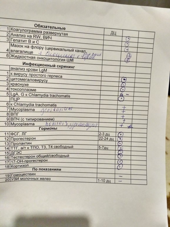 АнализыВообщем,мне кажется,что все таки в этом цикле снова пролёт будет,так что решила в следующем сдать все анализы и гормоны.напишите кто-нибудь подробно,что сдать и на какой день цикла. А то ходила в ЖК мне гиня сказала,что приходи после 1,5 года планирования.а это ещё 7 месяцев. Я не хочу больше ждать,хочу выяснить что со мной(с мужем все хорошо). Поход к новому гинекологу только через 4 недели(вот такая запись к нему😩😩😩) хочу придти к нему с результатами анализов