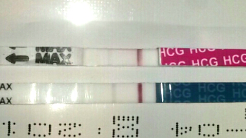 Сегодня видна стала вторая слабая полоска!))))но жду еще до понедельника чтоб повторить утром!