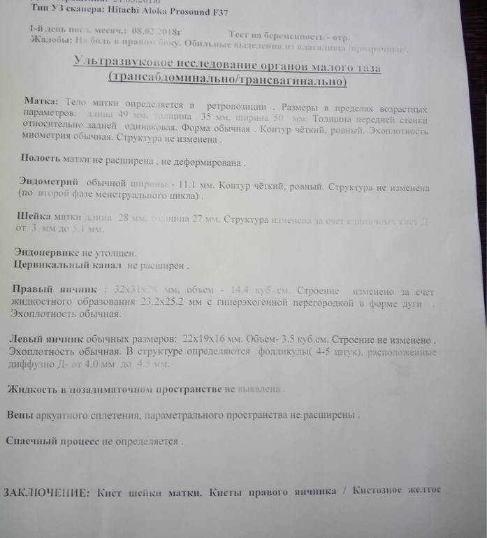 да я сама в шоке от этой узистки.....вот, в пятницу будет прием у моего гинеколога. а кисты у вас какие были размером? я так боюсь,что она большая
