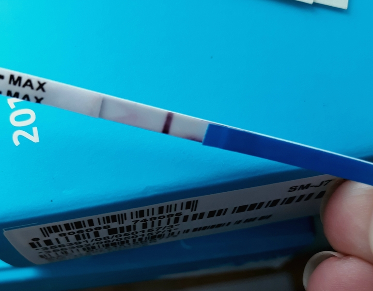 Походу да издевается, мне сейчас показал сначала вторую полосочку, пока сбегала за телефоном она пропала, это секунд 20.через несколько минут тонкая полоска появилась