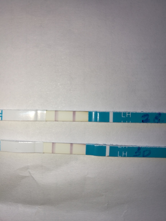 Девочки,купила тесты на овуляцию, проверить есть ли она вообще,да и хотелось бы попасть вовремя)))первый сделала на 15 ДЦ, второй сегодня-17ДЦ. Муж вечером возвращается с командировки,есть ли надежда?Цикл 30-31дц. На мой взгляд они одинаковые (