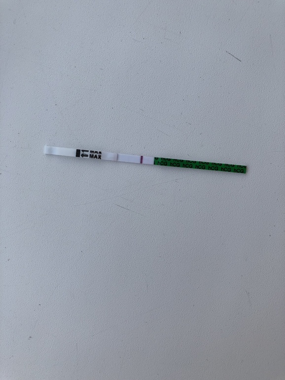 Это беременность, вот уверена я, полоску вижу хорошо, это не реагент, она толстая, как и должна быть. Не поднимайте тяжёлого, возможно, закрепится.