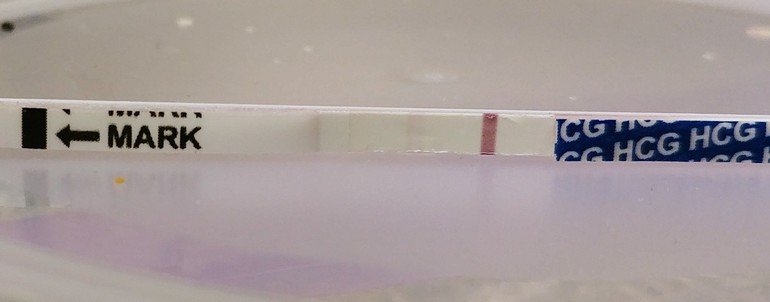 А фото обработанное? Затемнение, яркость? Просто я бы не сказала, что полоска у вас очень бледная. Нормальная полоска для 13 ДПО.