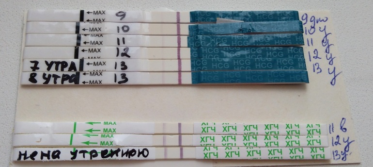 у меня была бхб утром тест яркий, а потом пустота (вечером , на след. день и т.д.) хгч 6