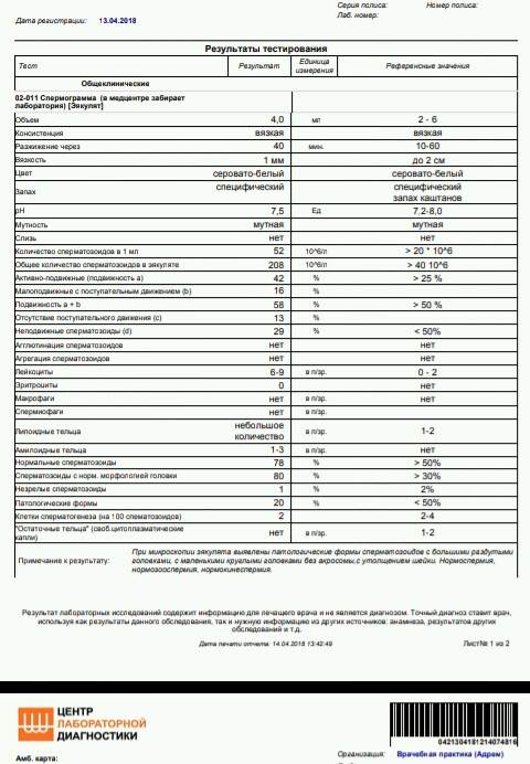 Результаты очень хорошие! Основные показатели: подвижность а+б - 58% и нормальные формы - 78%. Это очень хорошо.