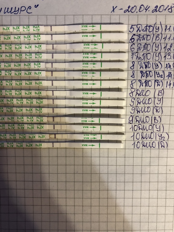 Может цикл с двинулся маленько, у меня за день до мес еле полосатились(был сбой цикла с 28 дней на 24 скакал) я побежала на хгч, результат 17,я думала б*будет, но нет, сдвинул я цикл, и овуля была вместо 26 аж 1ого апреля, пошла пересдала хгч через день, он 37,так что все может быть, вот тесты с 1 по 5 дз