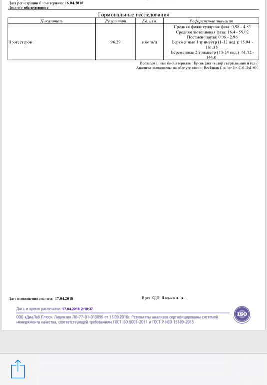 У меня такие же единицы измерения как и у вас. Хороший у вас прогестерон. Я бы приняла как первый звонок о наступившей беременности. По крайней мере, желтое тело работает хорошо! Я читала пост девушки, у нее был прогестерон 80 нМ/л и через неделю заполосатился тест! У меня в прошлый раз был прогестерон на 7 ДПО 70 в этих же единицах, а потом упал до 38. Была бхб. Не справилось ЖТ, как сказала моя РЕ. Поэтому я теперь на поддержке. И не пойму насколько этот крайнон увеличивает показатели.