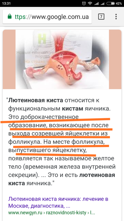 Была я на ещё одном УЗИ и у своего врача. УЗИ подтвердилось, и врач объяснила мне это как девочки снизу написали. Овуляции действительно не было, это лютенизацич фолликула произошла , вот и киста. В след нормальном цикле с дф будем колоть укол ХГЧ .