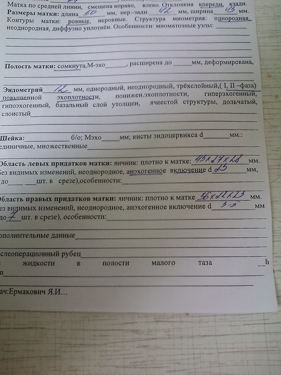 На 24 дц эндометрий 12 мм это норма. А вот в левом яичнике образование 25 мм, похоже на кисту.