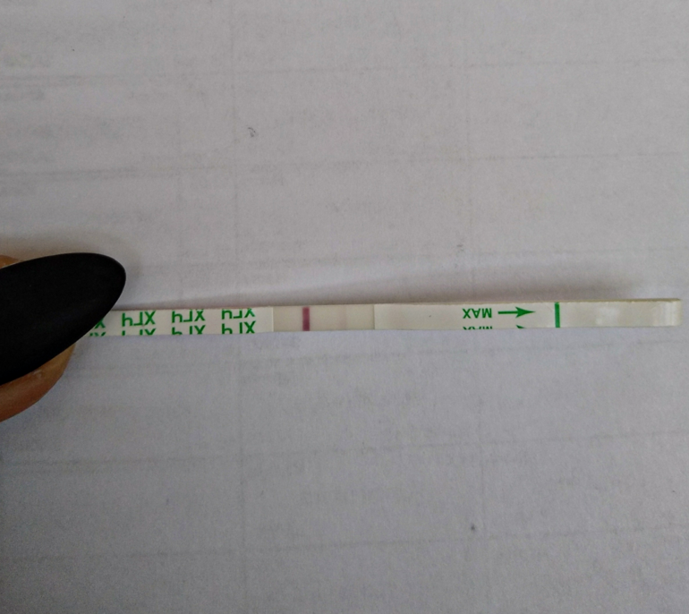 Поздравляю,но принципе нормальные полоска если в крови 40 то в моче намного меньше вот по этому такая не яркая
