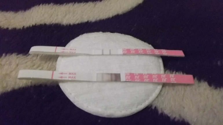 Девочки как думаете о была вчера? можно ли считать данный тест положительным? На верхнем фото верхний тест вчера, нижней сегодня.
