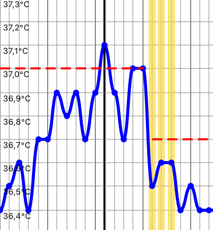 Может в день М упасть, может за 2-3 дня, может даже не упасть быть 37 например и к обеду пойдут М. Три года вела, одинаковых графиков считай и не было. Поняла одно если будет задержка по графику то можно сделать тест