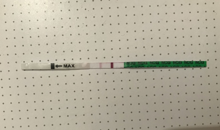 У меня была такая же полосочка) а год назад в мае узи подтвердило беременность) думаю у Вас то же самое