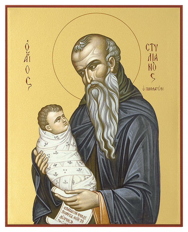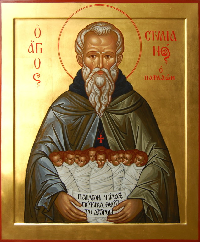 Я вошла в храм и подошла к иконе, очень интересная икона, у святого на руках много младенцев впереди, он покровитель детишек, но когда я открыла книжечку и увидела икону изображенную на акафисте этому святому, и, О ЧУДО!!! я увидела лик того святого, ту же икону, что я купила в Свире. Это тот святой имя которого было для меня не известным. Дивны дела Твои Господи! Святой открылся! Преподобный Стилиан, открылся!!! Я помолилась там, большая благодарность в моем сердце.....купила себе домой акафист. Домой пришла, рассказала мужу, он сам в шоке от явных чудес Божиих! Я подняла глаза к иконе прп. Стилиана, помолилась ему. Поблагодарила, что он у нас живет в доме. И слава Богу, теперь у нас еще один святой покровитель в семье - Стилиан Пафлагонский.