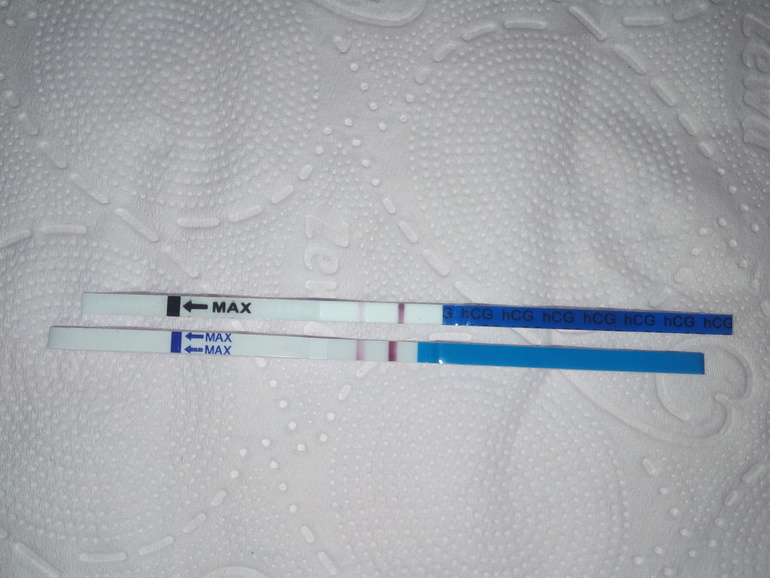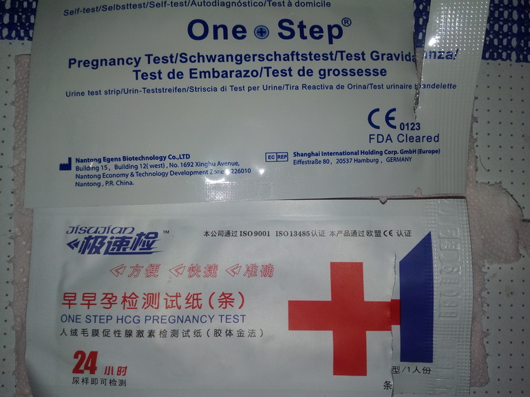 Оба теста с eBay. Верхний one step заявлен с чувствительностью 10. Нижний китайский one step, чувствительность нигде не написана, я считала, что 25.