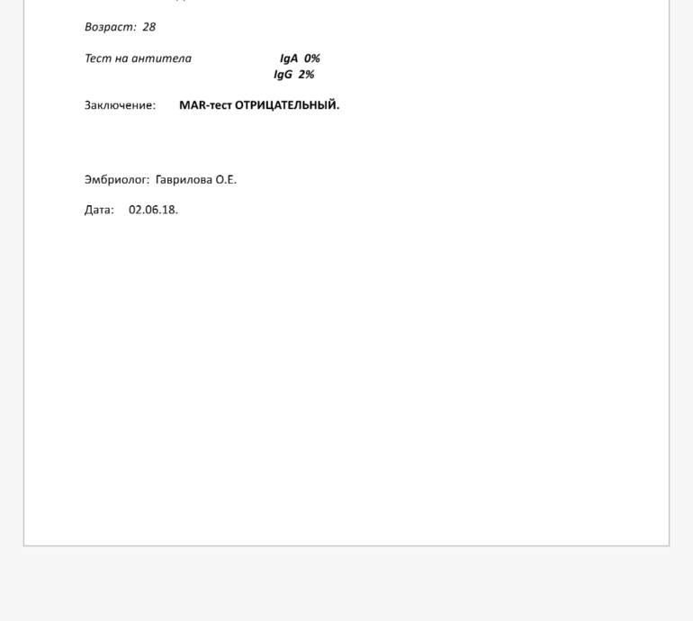 Мы делали мар -тест и расширенную спермограмму, кажется так , ниже результат мар-теста