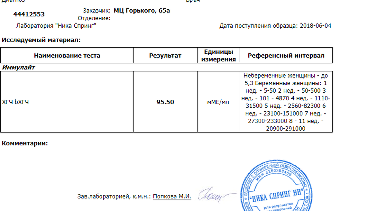 С дочкой увидев бледную полоску побежала ХГЧ сдавать ...наверно было за 1д до м. Дпо не считала никогда тогда) и вот, результат был 101...срок писали 1-2 недели (лаборатория Хеликс)