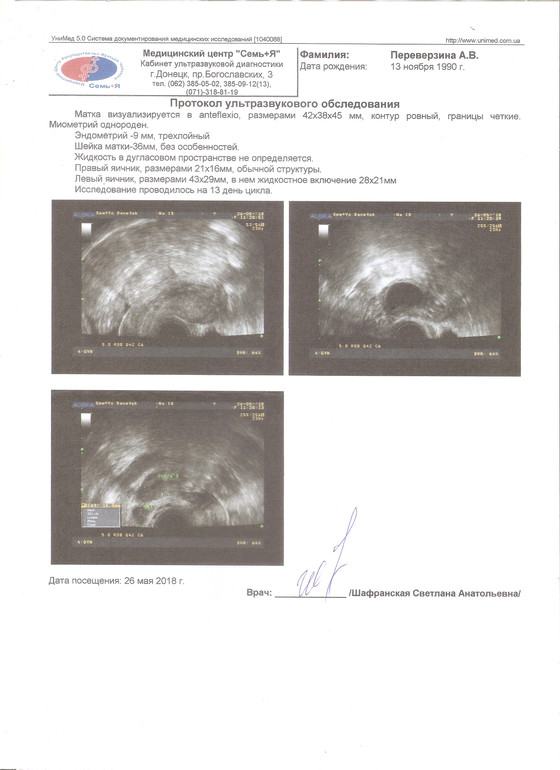 Пересдала я сегодня УЗИ как мне и сказали на 2 д.м.ц. И получилась вот такая картина. Киста стала намного меньше по размерам,яичник тоже. Получается она все-таки фолликулярная,а не эндометриоидная? И вот не понятно мне в последнее УЗИ она мне писала киста желтого тела,а теперь опять получается жидкостное образование.Это как? Просто УЗИ в этот раз делала другой врач,поэтому не было возможности толком спросить.Эта врач сказала прийти опять пересдать на 7 д.м.ц. Девочки что думаете? Я еще хочу пойти сда гормоны ЛГ, ФСГ, Пролактин, Эстрадиол, Тест. св. на 4д.м.ц и Прогестерон на 21 д.м.ц. Цикл у меня регулярный без задержек 27-28 дней.