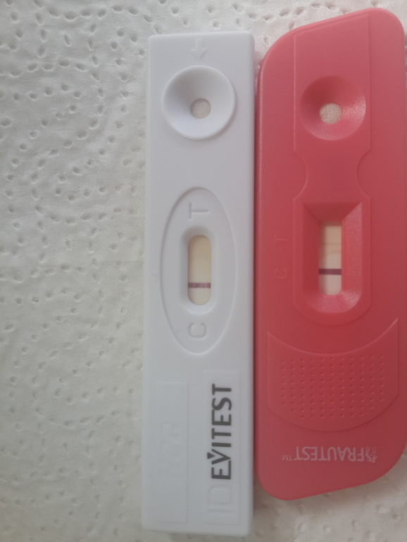 Ждем дня Х (Признаки беременности / Тесты)Всем привет!!! Я на таких форумах впервые оставляю темку(прошу не видеться такими)..но в последнее время все чаще их читаю...т.к вышла замуж и мы с мужем планируем малыша...дело вот в чем..У меня были проблемы гинекологического характера сколько себя помню...то задержки,то отсутствие мц! Намечалась в общем...пила года полтора Логест..после начали активно планировать малыша..цикл стал ровный...но в посл.4 месяца начались кровотечения во время месячных...пропила я в общем 2 месяца "Тайм Фактор" по рекомендации моего врача..и о чудо.. Задержка..начала делать тесты примерно с 3 дня задержки все пусто...сегодня уже 9 день..купила кассетные тесты Эви и Фрау..и теперь запуталась окончательно.то ли реагент,то ли заветная Б! Эви изначально был пуст,а Фрау показал ели видную полоску..дальше интереснее! Оставила я эти тесты,возвращаюсь через час..и на Фрау явная полоска,а на Эви ели видная..как это понять..помогите! Я к врачу попадут только через пару дней