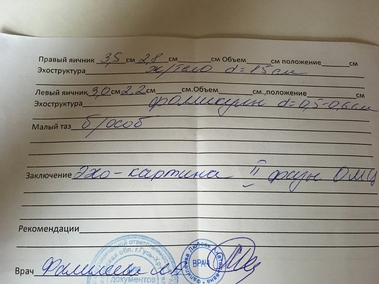 Я пошла на УЗИ тк ещё них живота потягивает и бывали прострелы ,до этого лечила поликистоз,пошла посмотреть была ли овуляция,а второй тест был электронный-я его просто разобрала))