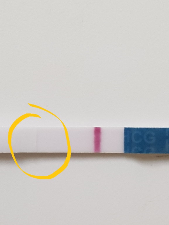 Это не реагент, а место, где идет стык,приклеена сверху полосочка- с одной же стороны синяя,а с другой стороны белая. Тест чист