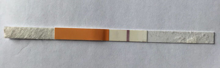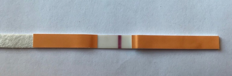 Да, просто сначала тест был пустой. Затем, минут через пять, проползла полоска красная (видимо, остатки реагента ползут, всегда так делает этот тест; полоска доползла до контрольной и пропала), а ещё через пару минут я увидела то, что на фото. :)