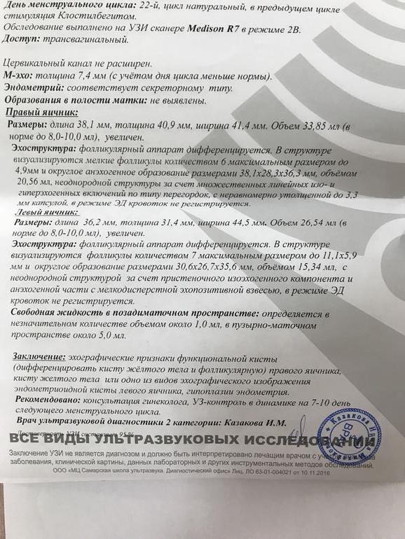 И вот сейчас 22 -й день цикла , была в отъезде , не было возможности делать УЗИ , делала тесты на овуляцию с 9 по 14 дц , но так и не дождалась положительного результата ( брала клеоблю - так и не дождалась улыбку )) не помню точно с какого дня , но неделю точно уже ( т.е с 15 дц ) начались боли в боках и слева и справа , но не прям где яичники , а выше .... эти боли мне прям дискомфорт доставляют ... усиливаются почему-то вечером тли прям когда спать ложусь 🤔 сегодня решила заехать на УЗИ глянуть что там ) и посмотреть была или не была овуляция .... и вот вышла и думаю , что лучше бы не заезжала ... одни неясности .. узитска ни на что не дала гарантий , все у неё под вопросом , и наставила кучу диагнозов 🤦♀️ Вышла вот вся в сметении и расстройствах , может кто разбирается и по фото может понять что и как ?