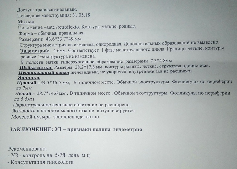 Тест только что сделала, отрицательный. Полип эндометрия был 2 года назад, чистили. На узи была осенью, было все в порядке. Вот сейчас записалась снова.