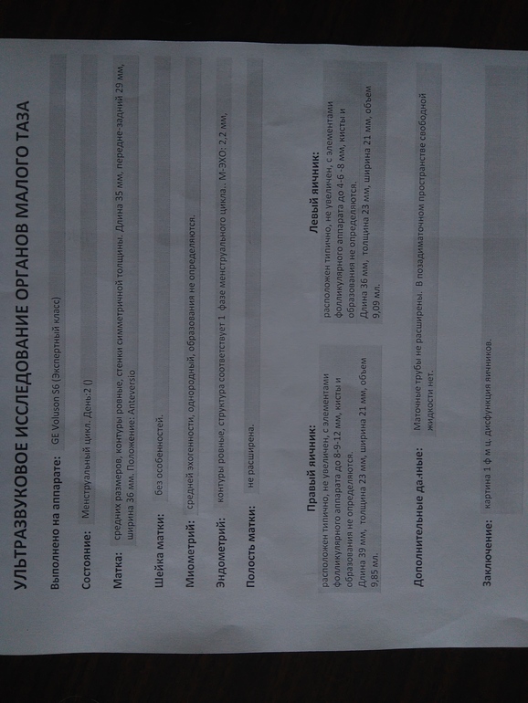 Привет всем! Цикл 35 дней, иногда были задержки, но никогда месячные не начинались раньше чем обычно. Последние месячные начались 1 июня и закончились 6 июня, позавчера 22 июня появилась мазня, а вчера уже более обильные выделения крови, пошла к врачу, думала что может кровотечение, оказалось пошли месячные.( чему я была очень удивлена( Врач сказала, что овуляции не было. На фото можно увидеть заключение врача. Что у меня Дисфункция яичников, почитав в интернете что это я пришла в ужас теперь сижу боюсь не знаю что думать. В мае были большие проблемы с университетом вся изпереживалась, июне умер родной и близкий мне человек, очень сильно переживала тоже, до сих пор прихожу в себя.
