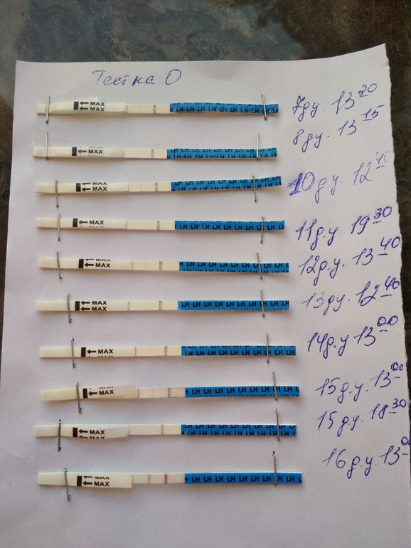 Овуляция( тесты на овуляцию)Девочки помогите разобраться🙏первый раз делаю тесты на О. Это уже она или завтра ярче будет?у нас с начала цикла ПА через день, так и продолжать или стоит теперь каждый день?пы.сы.тесты "я родился". На фото последний мокрый.