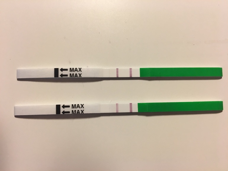 С мужем планируем беременность третий цикл после отмены ок, до этого пила ок полгода потому что врач не разрешала беременность из-за гормонов щитовидки (они были не в норме). Два цикла, как вы поняли были пролетными. Тесты на овуляцию тогда не делала, решила не заморачиваться. Когда снова пришли М закрались сомнения в наличии овуляции, решила третий цикл поотслеживать её. Сегодня 14 ДЦ, обычно 28 дней цикл (+-2 дня), то есть расчетный день овуляции. Сделала на утреннюю мочу тест (хотя вроде так нельзя, но мне в другое время было неудобно) и он мне выдал жирную вторую полоску (верхний тест на фото), вечером решила повторить и вторая полоска уже не такая жирная (нижний тест)... До второго теста 2 часа не ходила в туалет. Вот не могу понять есть овуляция или её нет. Помогите, пожалуйста, разобрать, бывалые планюшки.)