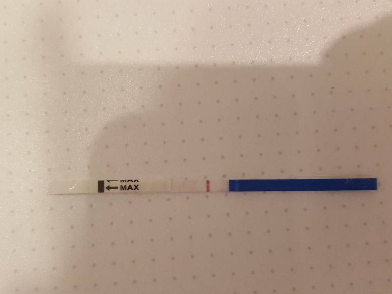 Растёкся реагент ,я даже понять не могу где полоска :( купите обычную тест полоску и переделайте , для электронного может быть рановато