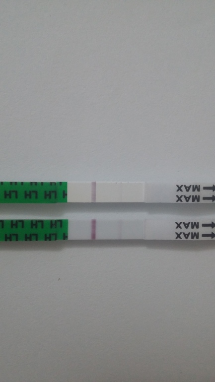 Овуляция( тесты на овуляцию)Девочки у меня вопрос по тестам. Цикл у меня 30 дней, пн тест сделала на 11дц (на фото он сверху) второй сегодня 12дц. Посмотрите фото что это значит, что скоро О или я рана начала из делать? Для меня это дремучий лес((