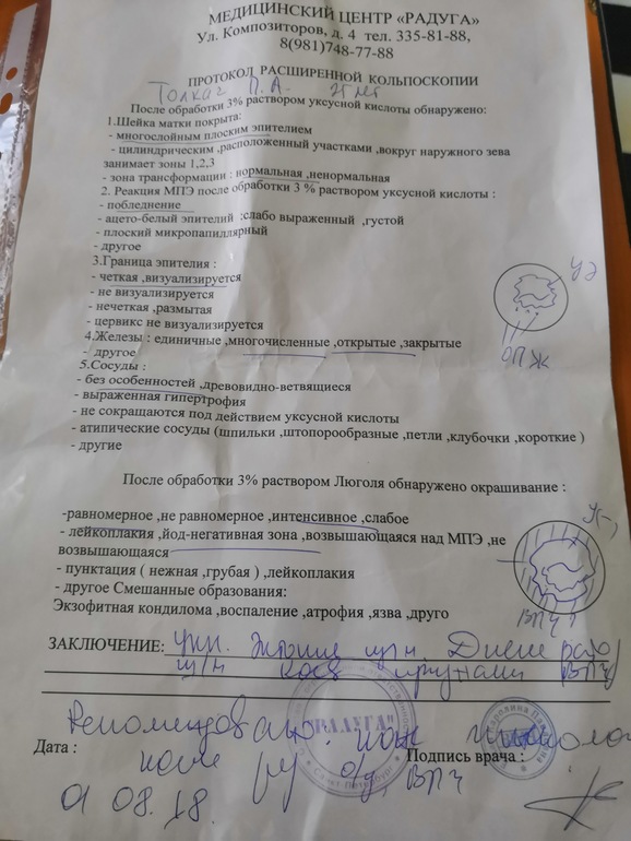 Назначила кольпоскопию. Сегодня сделала. Результаты не понимаю от слова-совсем.
