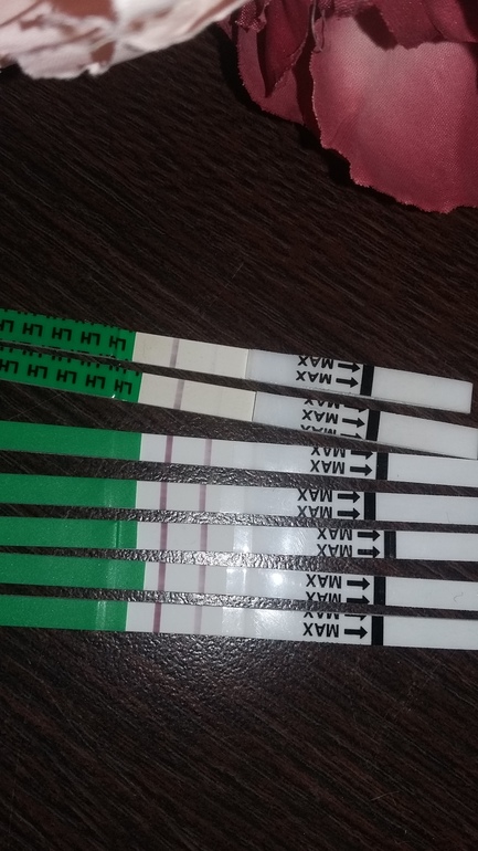 Овуляция( тесты на овуляцию)Вот мои тестики)) девочки, получается что не у всех положительный тест ярче контрольной тк у меня по тестам пик был на 16 дц вчера уже не такие яркие 17дц и по приложению О должна быть на 17дц(вчера) старались с мужем изо всех сил)) а сегодня замочила тест на 18дц он уже бледнее. Как то так, надеюсь что в этот цикл у нас все получится ))