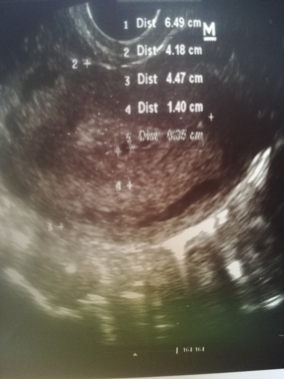 На первом фото, прям где цифра 1 стоит. ) Но на фото этих может и не видно ничего, а в процессе узи они бывает всего на пол-миллиметра руку сдвинут с места, а картинка поменялась радикально. ))