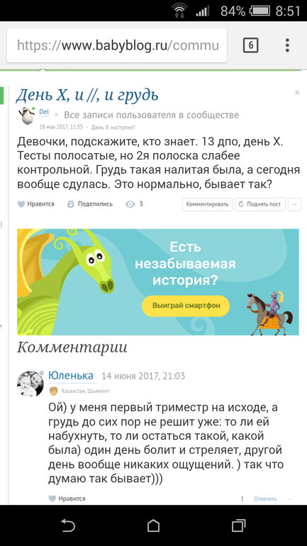 У меня тоже грудь спокойная, И даже М прошли во время Б...