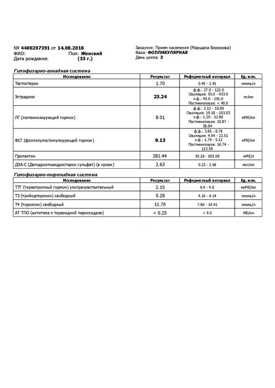 В принципе всё в норме. Единственное ЛГ высоковат для 3 дня цикла. Да и разница между ФСГ и ЛГ должна быть по больше. В норме в полтора раза ФСГ должен быть выше.