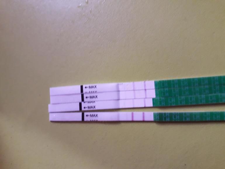 Овуляция( тесты на овуляцию)И снова я, с тем же. Три дня назад, 14 числа, тест на О был положительным. Он последний на картинке.