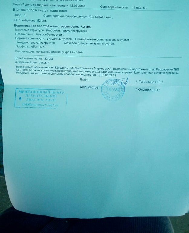 Судя по узи все очень плохо((( ребенок с хромосомными аномалиями. Направят ее на прокол и если подтвердится то предложат прерывание