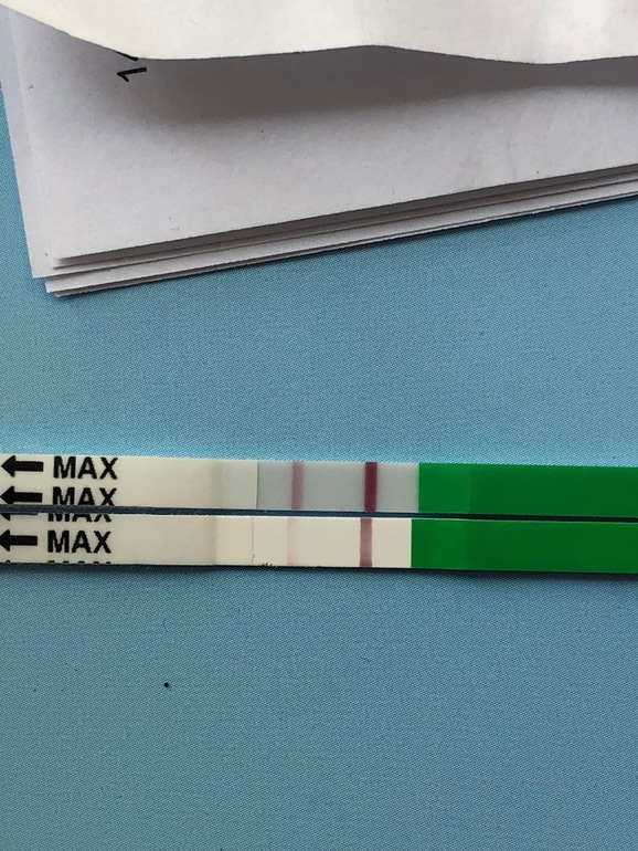 на верхнем тесте сегодняшний, высохший уже, нижний - вчера (тесты ovuplan, clearblue цифровой вчера показал нолик, без улыбки, вечером сегодня еще раз попробовать? или ждать, пока ярче станет???)