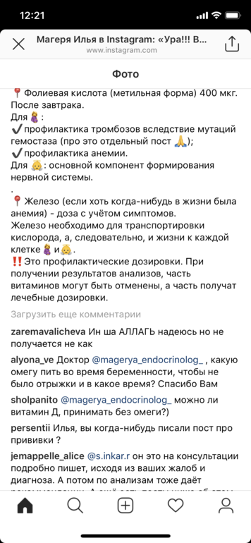 Я тоже еще во время планирования начала пить с мужем вместе "9 месяцев Омегамама"!))) по 3 капсулки в день, отдельно еще Йодомарин 100 по 1 табл, В9 по таблетке и магний тоже по 1 т/2 раза в день.