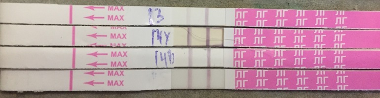 Вот мои :(14У выброс ЛГ, на след день грудь начала болеть , значит О пошла)
