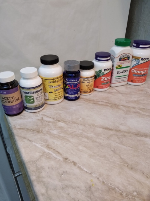 1. омега 3-200капсул по 2 кпсуле =3месяца2. цинк 250 таб (на двоих) по 1 табл 4 месяца3. витамин Е 400 250 (на двоих) по 1 капсуле 2 рвд4.селен 180(на двоих) по 1 таб 1 рвд 1,5 месяца5.мотилити бутс по 60 капсул по 1 кап*2рвд=(пить 3 месяца)сразу заказть 2 уп 6. л карнитин по 1 кап *2рвд =(пить 3 месяца) 7. мультивитамины по 1 таб хватает на 2 мес8. альфа липолевая кислота усилинная форма на тощак по 1 кап *1рвд